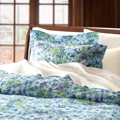 Our elegant pastel flowers are printed by EuropeTMs most prestigious mill on exquisitely soft Italian voile the lightest fabric weTMve ever seen 360 thread count 100 combed cotton fabric is specially finished for extra softness color-fastness and durability Duvet cover has hidden button